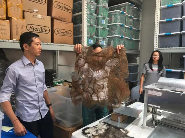Turning the hair into a thin textile called a scrim is one of the first steps of the process. (Photo: Matter of Trust)