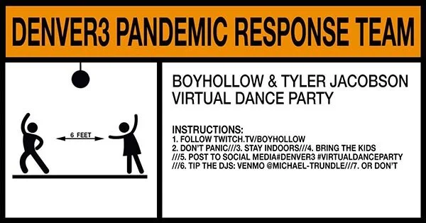 The DJs behind Lipgloss, an indie dance night in Denver, have been particularly dedicated to throwing Zoom dance parties ever since the pandemic began. They now throw dystopian dance parties out of their basement called “Pandemic Response Team,” advertising them with marketing materials that lean into the cautionary nature of our times.