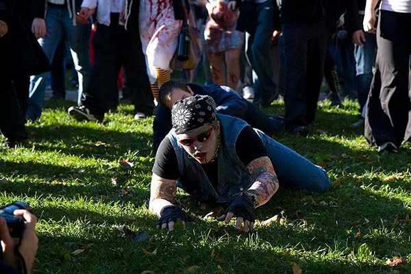 An adult showing off their crawling skills at a “Zombie Walk” in Toronto, Canada. (Wikimedia Commons / veggiefrog)