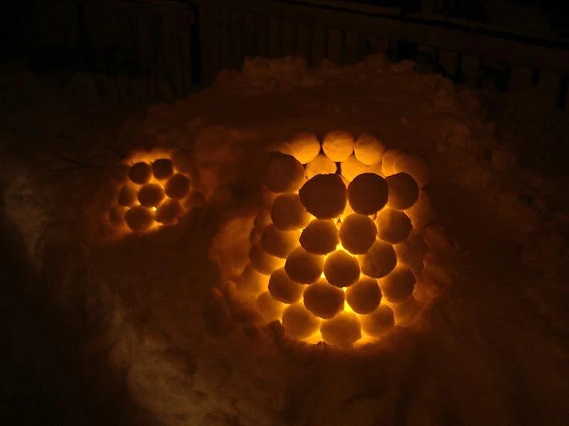 If you’re too lazy to go through all these motions, there are alternative ways to combine candles with snow. In places like Finland, Norway, and Sweden, it’s common to make snow lanterns by stacking snowballs in a pyramid shape above a burning candle.