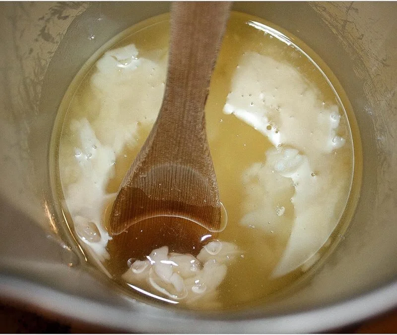 If you’ve purchased new wax, simply follow the directions on the packaging to melt it. You’ll likely only need a pan and a wooden spoon for stirring the chunks of wax into a more supple texture.